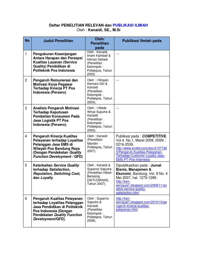 Perihal Daftar Penelitian Relevan Dan Publikasi Ilmiah (Kanaidi, SE., M.Si)